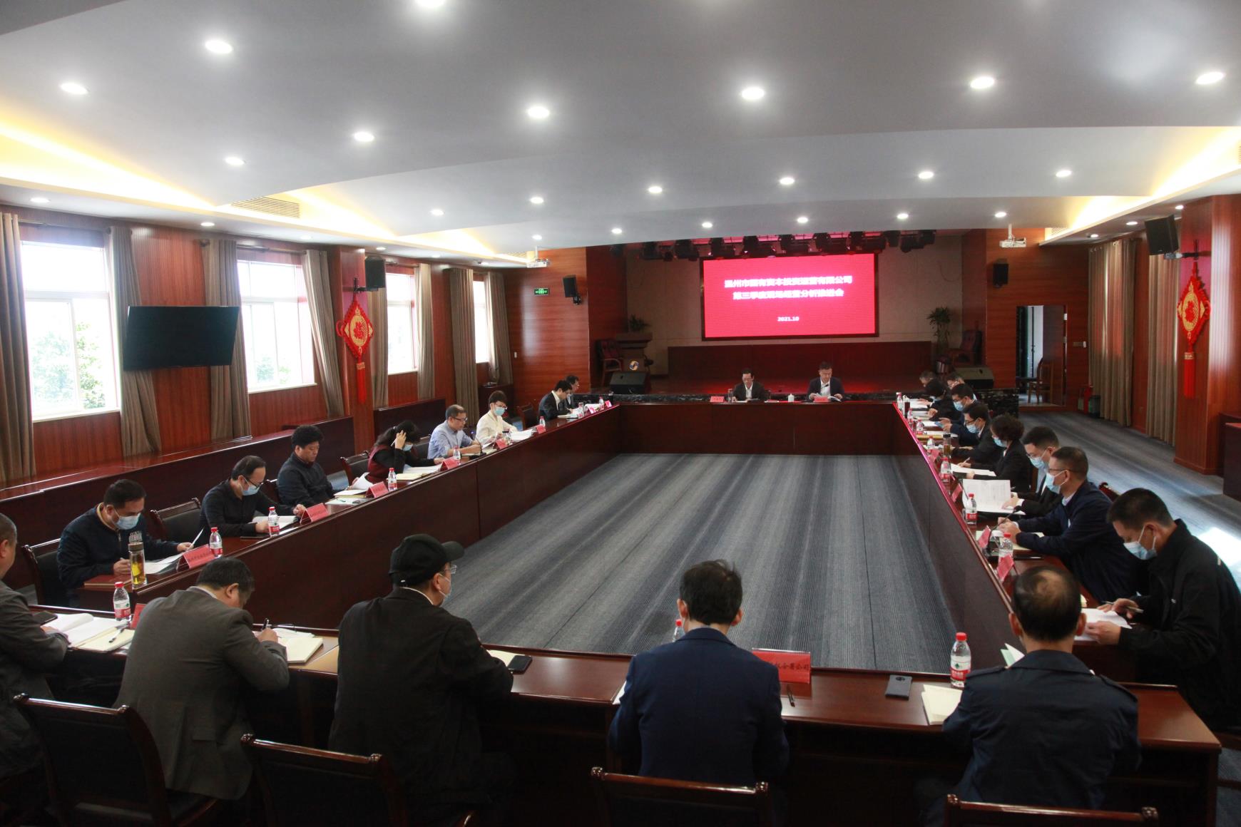 10月29日上午,市国资运营公司2021年“大干四季度 夺取全年赢”前三季度现场经营分析推进会召开。会议要求深入落实市委市政府相关要求部署,结合公司“十四五”规划年度工作计划以及三年行动计划年度任务,对标对表三张考核“清单”指标,找寻差距,分析短板,拟定对策,严抓落实,掀起“大干四季度 夺取全年赢”的工作热潮,以争先创优的实绩确保年度目标圆满完成。...
