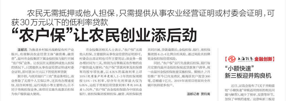 “农户保”让农民创业添后劲
