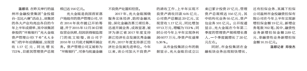 “坏账银行”光大金瓯业绩靓丽