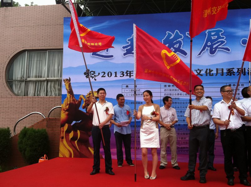 9月22日上午,集团志愿服务总队15名志愿者代表参加由市国资委举办的2013年全市国资国企文化月系列活动暨志愿服务总队启动仪式,集团副总经理刘联松同志从市国资委领导手中接过了市志愿服务总队的旗帜。