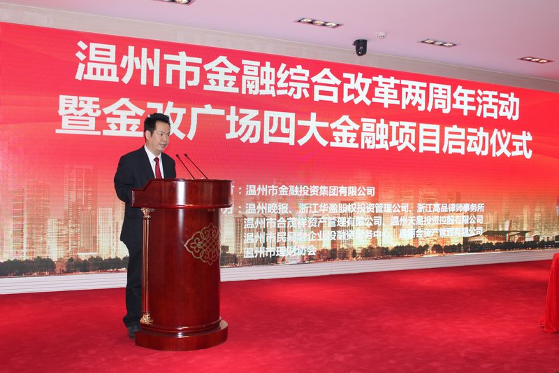 为实践温州金融改革,丰富温州金融业态,3月28日下午,温州市金融投资集团有限公司四大金融项目在温州金改广场同时启动。来自中国人民银行、各大银行温州分行、在温券商、保险、信托、期货等金融机构一百余人出席了此次启动仪式。