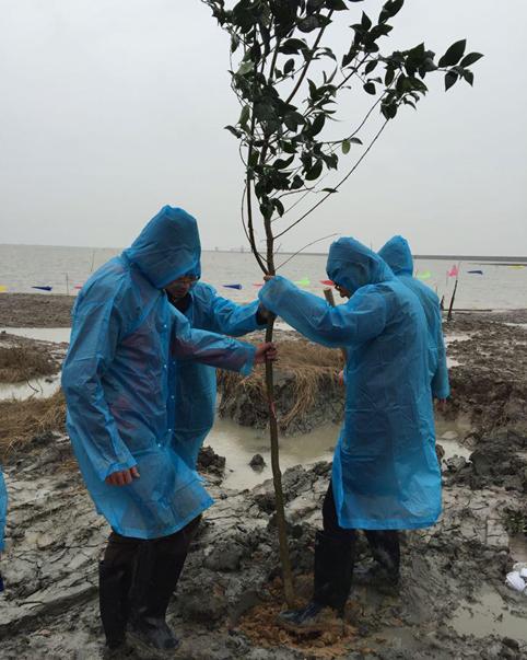 植树现场,集团团委和青年志愿者有条不紊的衔接种树的各个环节,按照植树的基本要求,做好相关措施,以最大程度保障树苗今后的成活率。活动现场,在风雨交替的环境中,金投人发挥了艰苦奋斗、不怕困难的精神,共种下了近20株树苗,为瓯飞工程龙湾二期南堤增添了一片生机勃勃的绿色。