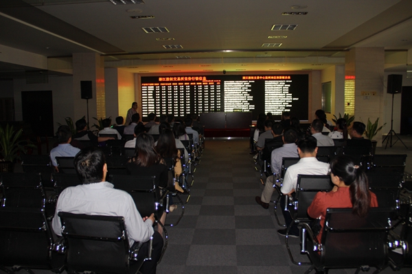 月13日下午,江西九江市领导干部一行90人就温州金融综合改革情况到金融改革广场调研考察,中共市委党校培训处带队陪同考察。 考察人员首先听取广场工作人员对一楼入驻单位的基本情况介绍,对相关的业务内容进行了详细了解,并对温州市股权营运中心、温州产权交易市场有限公司、温州市金投融资担保有限公司等单位的业务开展进行了积极交流探讨。随后,在广场二楼大厅,考察团一行仔细参观了温州农村产权交易公司及温州市股权营运中心股权交易大厅,并相应了解了上述公司的业务开展情况。