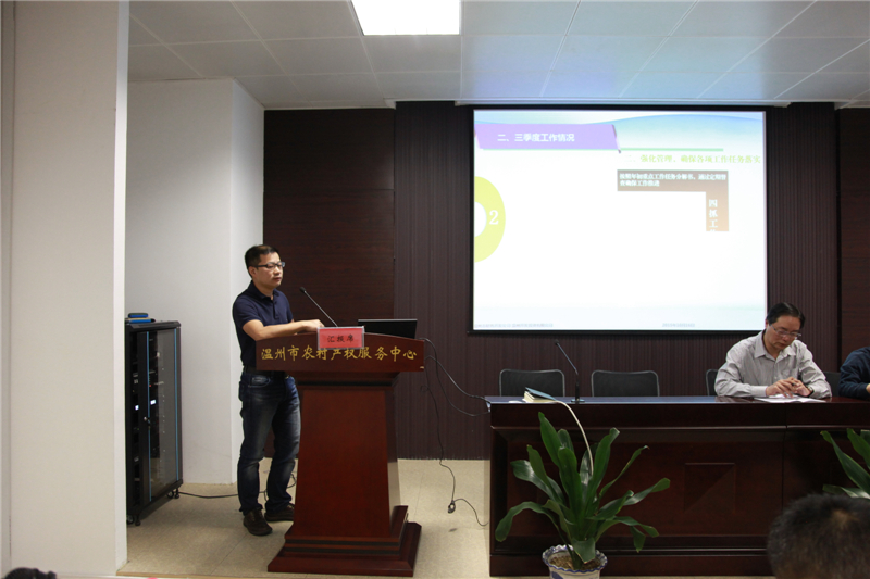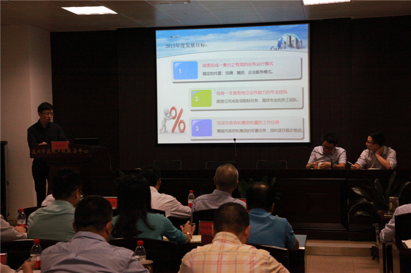 温州市农村产权服务有限公司副总经理罗朝辉汇报工作