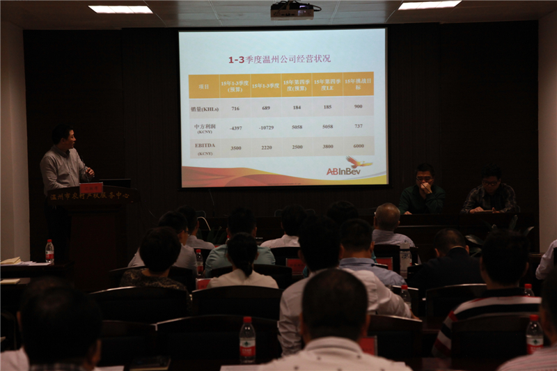 在集团全资、控股企业汇报后,参股的浙江金海蕴生物有限公司、英博双鹿啤酒集团、温州市农村产权服务有限公司、温州金融资产交易中心有限公司等成员公司就业务开展方面进行了汇报。其中,温州市农村产权服务中心已完成农村产权交易733宗,交易总金额达5.97亿元,交易服务项目和数量比去年都有大幅增加,较去年同期增长百分之七十以上。