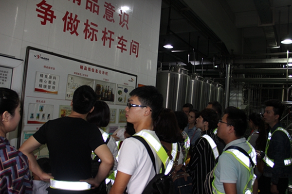 上午9:30,活动团参观了温州英博双鹿啤酒厂,体验啤酒制作的工艺流程,并在啤酒体验吧品尝了新鲜酿造的各式啤酒,增进了对集团啤酒厂的整体了解。