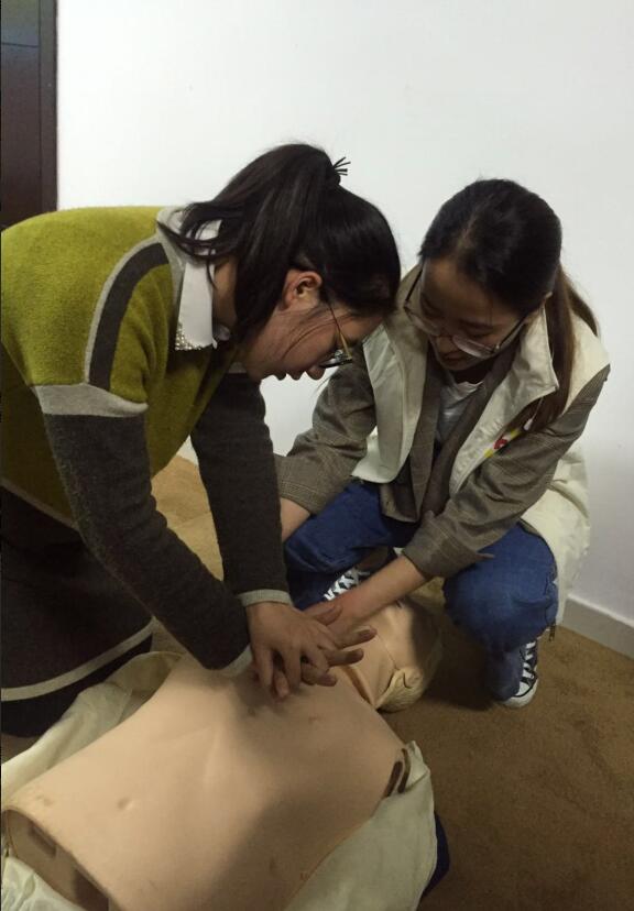 课上,来自温州红十字会的王老师以生动的语言、真实的案例,结合日常生活和工作,分别就急救重要性、基础知识、心肺复苏CPR、除颤AED用法、气道梗阻及各类创伤的处置方法进行了讲解和示范,并就心肺复苏、创伤救护等基本技能与职工进行了模拟操作。