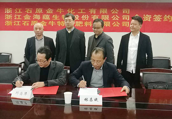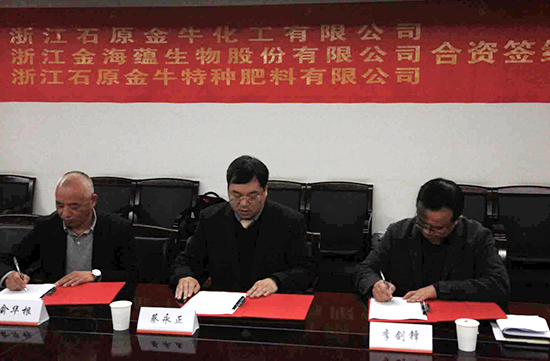 11月29日下午,温州金投集团旗下浙江金海蕴生物股份有限公司与浙江农资集团旗下的浙江石原金牛化工有限公司、浙江石原金牛特种肥料有限公司在杭州签署合资协议。三方在销售渠道、营销队伍、生产供应等方面进行整合,成立集研发、生产、销售于一体的工贸型现代化特种新型肥料企业,合资公司暂定名为浙江海洋生物技术有限公司,公司注册地在温州市洞头区,主营产品为羊栖菜海藻肥等海洋生物肥料。