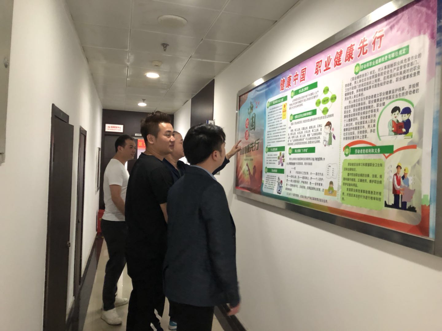 会后,以各部门中层干部对会上内容进行宣贯,员工以微信群参与学习的方式,全公司认真学习《职业病防治法》。 另外,还在公司宣传栏上张贴了职业病安全知识宣教画,围绕宣传主题,介绍常见职业病防治特点,职业病防治工作职责等。