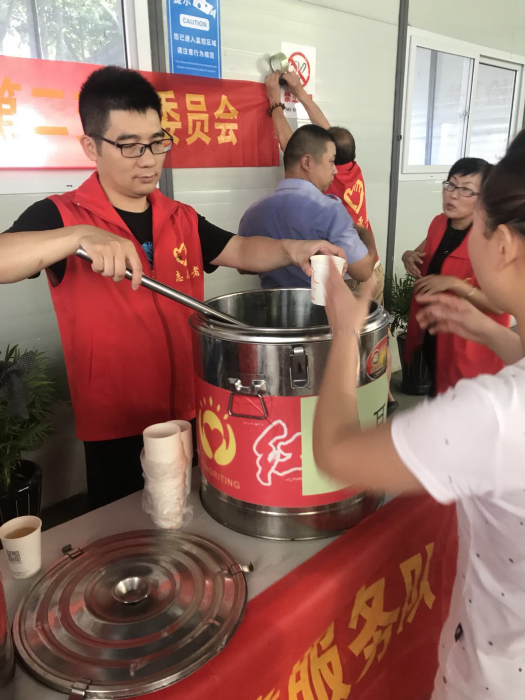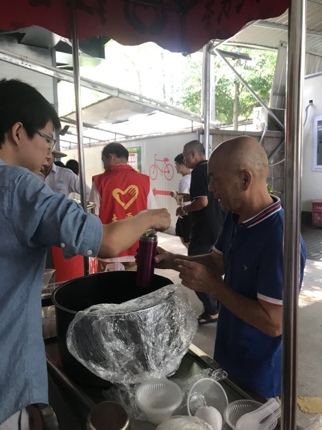 8月22日一早,第一支部党员和第二支部党员分别行动,第一支部党员前往红日亭提取伏茶和银耳汤等物资,第二支部党员负责运送凉粉、杯子等。