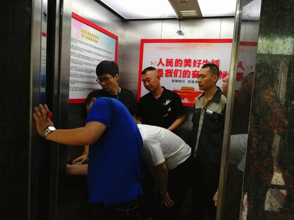 首先进行的是电梯困人应急预案的演练,电梯维保方专业人员对本次困人演练的注意事项和流程进行了详细的宣讲之后,参演相关人员在维保方专业人员指导下对如何排查问题,解救被困乘客等进行了认真的演练,通过演练参演人员知道了电梯日常维保重要性,也更加了解电梯困人后的工作流程。熟悉应急操作流程确保了为承租客户提供一个安全、舒心的工作环境。