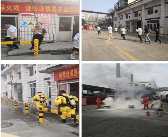 2019年10月11日在制冷工段现场举行氨泄漏应急综合演练,梧田市场监督管理局、梧田农贸市场、公司工会、总经理室等领导到场观摩指导。