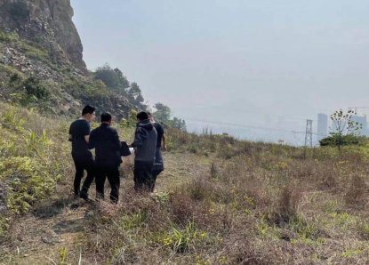 王瑞杭一行在温州市勘察测绘研究院专家的陪同下沿马鞍岭陶土矿矿区边界山路绕行勘察,沿途探察矿区地质状况,确定界碑安放位置,并就租赁面积的测算、边坡治理、土地平整等问题进行深入交流,探讨项目开发计划。