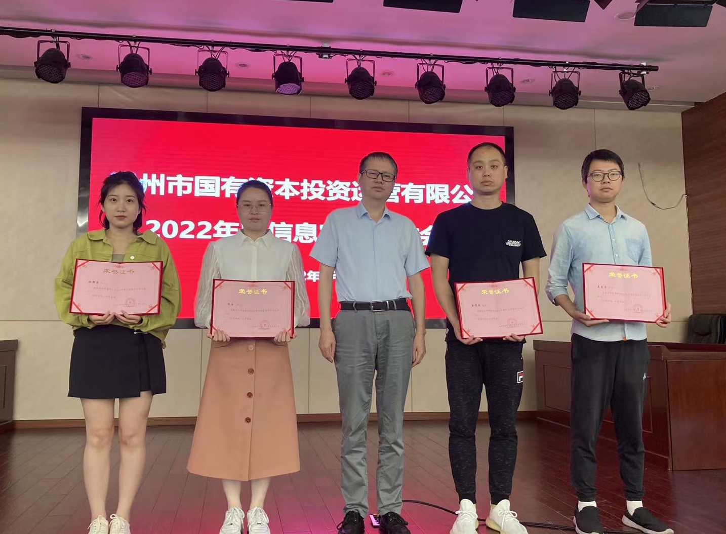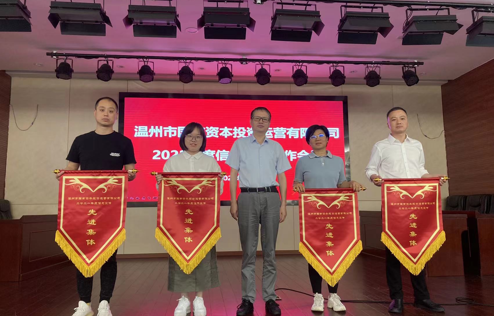 会议通报了2021年度公司信息宣传先进集体,分别为人力资源部(党群工作部)、温州国投建设有限公司、温州联合产权交易中心合署公司、温州国投资源回收科技有限公司;2021年度公司信息宣传先进个人,分别为金俊羽、陈白、张静苗、南美京;《市国资运营公司组队赴上海学习考察城市更新基金运作》《温州政府产业基金撬动近1.5亿元战略投资康宁医院》《公司国有产权交易率先接入“浙交汇”全省统一数字平台》等10篇稿件获选2021年度优秀信息宣传稿。