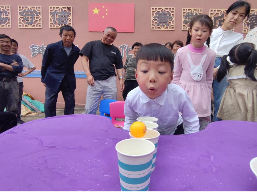 当天下午,在陈钟村文化舞台组织“吹乒乓球”、“气球背靠背”等丰富的游戏,并特别为孩子们准备了装有玩具、学习用品、绘画用品等30份“大礼包”,在一片欢声笑语中,给孩子们送去节日的祝福和诚挚的关怀。