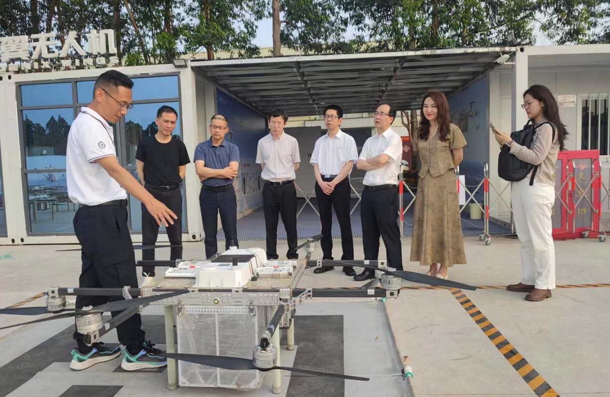 在丰翼科技(深圳)有限公司,公司一行先后调研丰翼科技医疗应用场景、丰翼无人机物流常态化运营和无人机运控平台、指挥调度、维护保养等场景设施,实地察看低空经济发展现状。