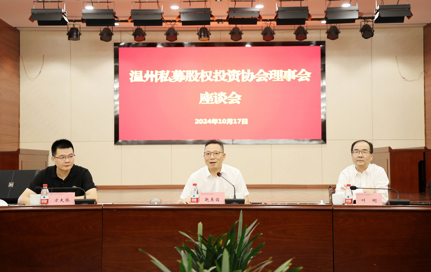 10月17日下午,温州私募股权投资协会理事会首次座谈会,在弹珠台游戏 举行。协会副理事长以上单位代表,齐聚一堂,加强交流与合作,共商发展大计,壮大温州股权投资生态圈。弹珠台游戏 党委书记、董事长赵东佐主持会议,党委副书记、总经理叶刚介绍公司发展历程和“大国投”平台战略布局。市政府办公室证券金融处处长方大林作工作指导。协会秘书长祝彬汇报工作计划。协会副理事长单位代表围绕各自单位情况和协会工作作交流发言。