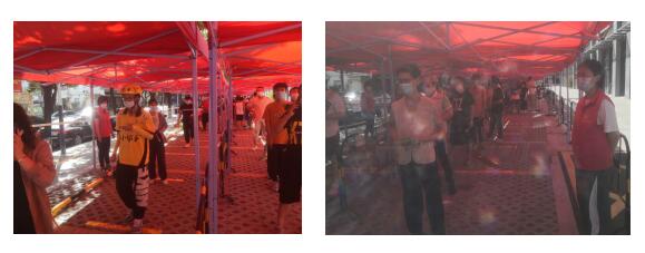 烈日当空、酷暑难耐,敞开式的检测点挡不住扑面而来的热浪,志愿者们汗湿了贴身衣物,在志愿者们的积极协助下,整个核酸检测现场,忙而不乱秩序井然,核酸检测工作顺利进行。