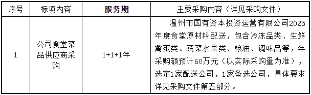 根据《温州市市属国有企业采购管理办法》(温国资委〔2024〕第51号)等有关规定,温州民正招标代理有限公司受弹珠台游戏在线玩 委托,就公司食堂菜品供应商采购以公开招标方式进行国企采购,欢迎国内合格的供应商前来投标。