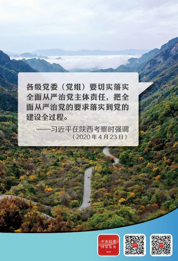 4月20日至23日,习近平总书记在陕西考察时强调,各级党委(党组)要切实落实全面从严治党主体责任,把全面从严治党的要求落实到党的建设全过程。他指出,延安精神培育了一代代中国共产党人,是我们党的宝贵精神财富。要坚持不懈用延安精神教育广大党员、干部,用以滋养初心、淬炼灵魂,从中汲取信仰的力量、查找党性的差距、校准前进的方向。要把政治建设摆在首位,严肃党内政治生活,严格落实中央八项规定及其实施细则精神,坚决破除形式主义、官僚主义,构建一体推进不敢腐、不能腐、不想腐体制机制,为各项事业发展提供坚强保障。