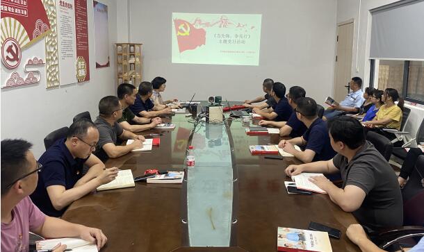 会议传达学习了《关于以“当先锋 争先行”为主题集中开展支部主题党日活动的通知》等文件,会议上就通知内容进行任务布置,指导尽快完成各项任务。党总支书记陈瑞鹏领学《干在实处 勇立潮头---- 习近平浙江足迹》,并还为党员干部们上党课,引导党员干部们在寻根溯源中深刻读懂新思想的萌芽与实践。